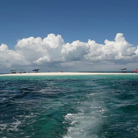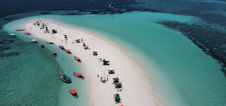 Arrive at Pungume’s famous sandbank, a stunning strip of white sand that appears and disappears with the tides.