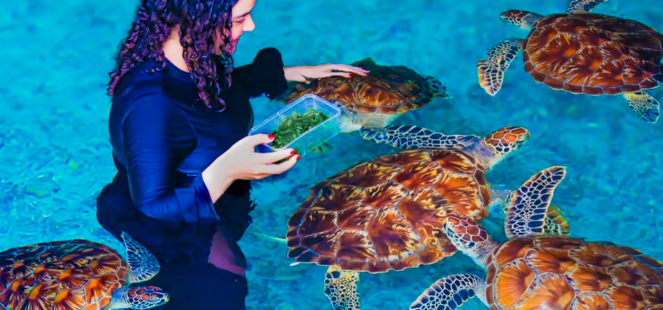Feed the turtles responsibly under guidance from trained conservation staff.